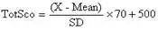公式中TotSco表示總分,X表示每位考生常模轉(zhuǎn)換前的原始總分,Mean表示常模均值,SD表示常模標準差。每次四、六級考試等值后的卷面分數(shù)都將參照此常模公式轉(zhuǎn)換為報道分數(shù)。