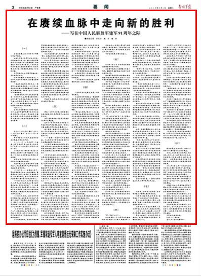 2018,八一。當歷史的時針指向這個神圣光榮的日子,讓我們回望那光耀千秋的偉大征程,銘記歷史、不忘初心、牢記使命、不懈奮斗,確保人民軍隊血脈永續、根基永固、優勢永存,不斷書寫強國強軍更為輝煌的篇章!請關注今日出版的《解放軍報》的文章——