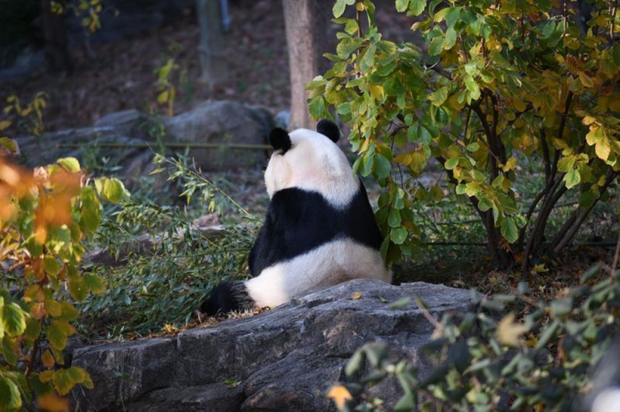 11月13日,“貝貝”在位于華盛頓的美國國家動物園內(nèi)的“銷魂”背影。新華社記者劉杰攝