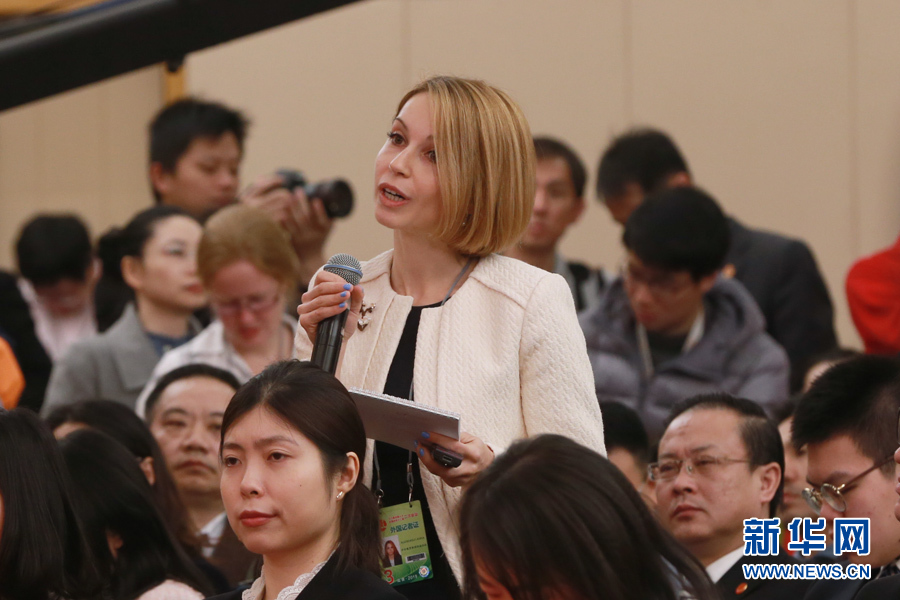 十三屆全國人大二次會議新聞中心3月8日10時在梅地亞中心新聞發布廳舉行記者會,邀請國務委員兼外交部長王毅就“中國外交政策和對外關系”相關問題回答中外記者提問。圖為今日俄羅斯國際通訊社記者。新華網/中國政府網 馬娟 攝