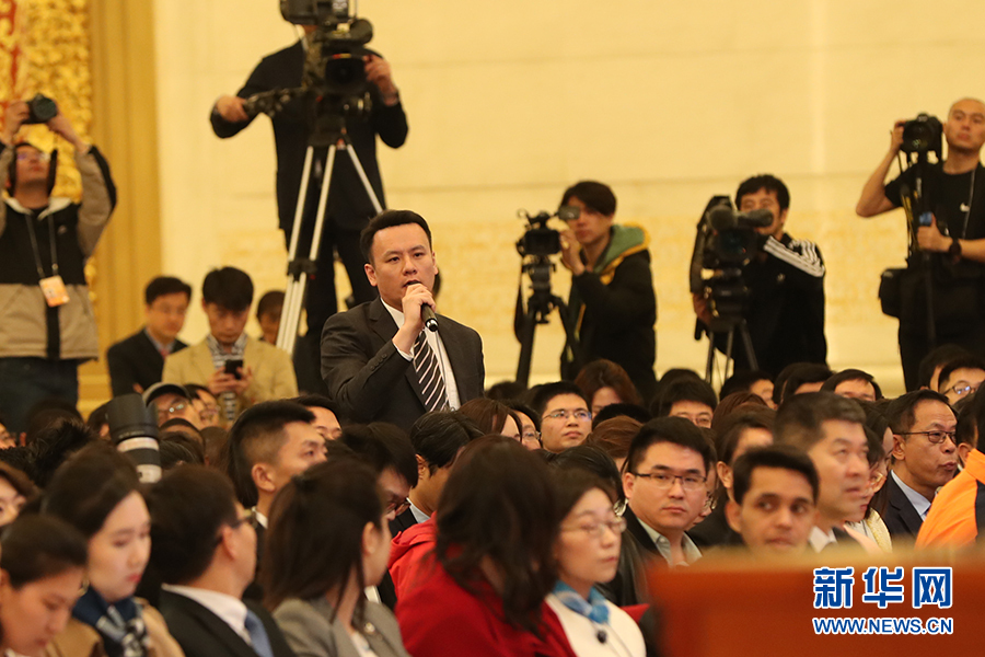 3月15日上午十三屆全國人大二次會議閉幕后,國務院總理李克強在人民大會堂三樓金色大廳會見采訪十三屆全國人大二次會議的中外記者并回答記者提出的問題。圖為中國新聞社、中國新聞網記者提問。新華網/中國政府網?陳杰 攝