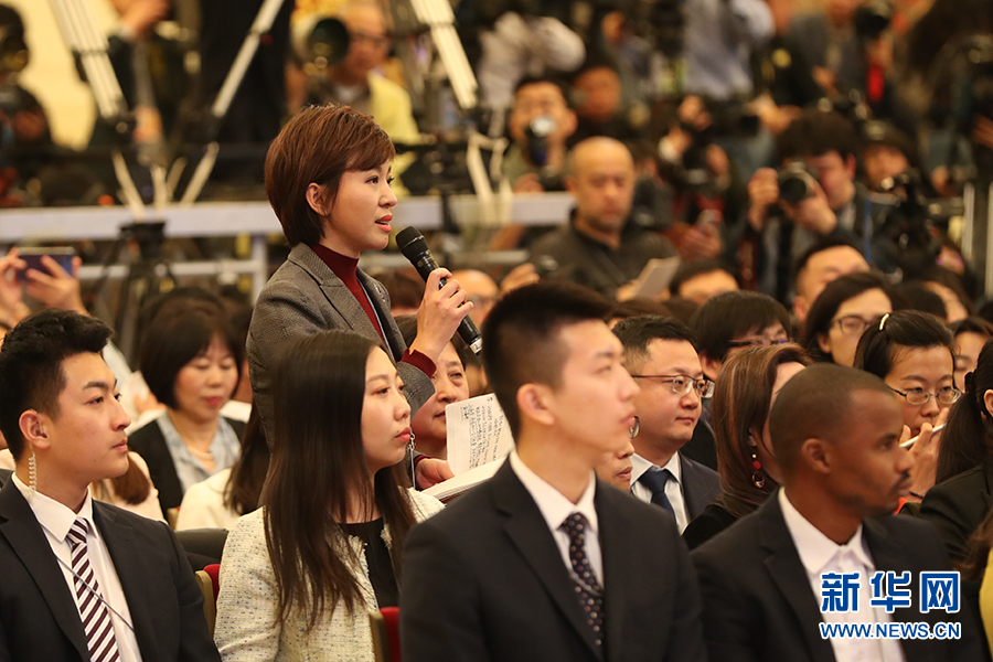 3月15日上午十三屆全國人大二次會議閉幕后,國務(wù)院總理李克強(qiáng)在人民大會堂三樓金色大廳會見采訪十三屆全國人大二次會議的中外記者并回答記者提出的問題。圖為中國廣播電視總臺記者提問。新華網(wǎng)/中國政府網(wǎng)?陳杰 攝
