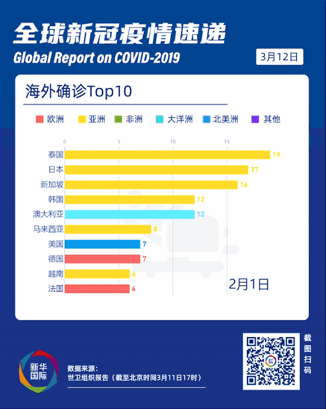 這是一組令人憂心的數(shù)字:過去兩周,中國(guó)以外新冠肺炎確診病例數(shù)增長(zhǎng)了13倍,受影響國(guó)家和地區(qū)數(shù)增加了兩倍。