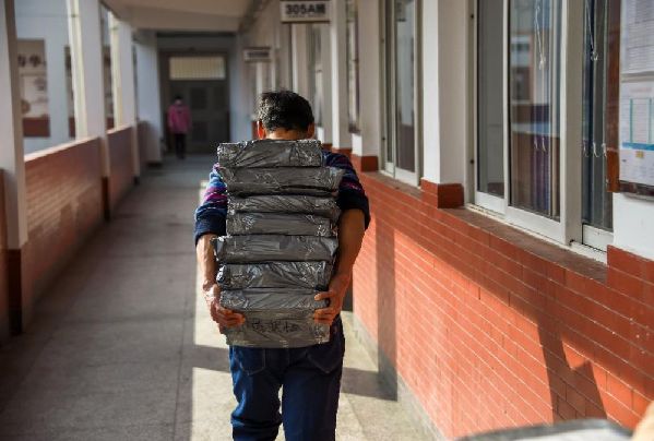 還有一個(gè)家長(zhǎng)幫忙背書搬運(yùn)