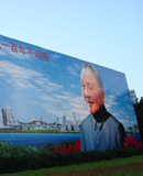 廣場一端的巨幅畫像上,改革開放的總設計師鄧小平身著淺灰色中山裝,堅毅地凝視著前方。畫面左上方寫著:“堅持黨的基本路線一百年不動搖。” 詳細內容>>