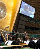 國東部時間5月20日下午,紐約曼哈頓,聯合國總部大會廳。一場中美軍樂團聯合音樂會隆重舉行。首次走進聯合國的中國人民解放軍軍樂團,演奏了《歌唱祖國》為音樂會“壓軸”。激昂的樂曲在這里回蕩,難忘的歷史在這里流淌…… 詳細內容>>