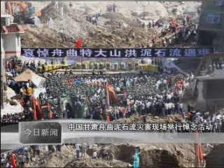 甘肅舟曲泥石流災害現(xiàn)場舉行悼念活動