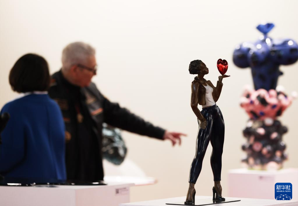 2月16日,在位于法国巴黎埃菲尔铁塔附近的临时大皇宫,人们在ART CAPITAL艺术展上参观。