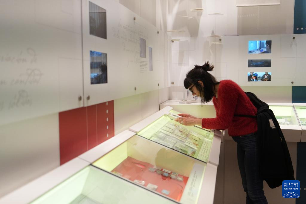 11月8日晚,一名观众在位于阿根廷布宜诺斯艾利斯自由宫内的邮票博物馆参观。