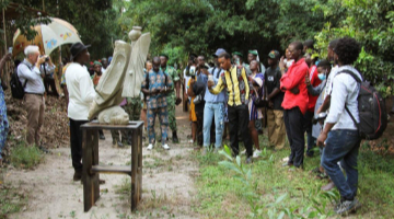 1月16日,观众在中国美术馆参观展出作品《回游—波系列》。