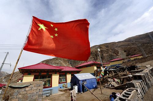組圖:青海省玉樹軍分區官兵與孤兒學校師生一起跳藏族鍋莊舞