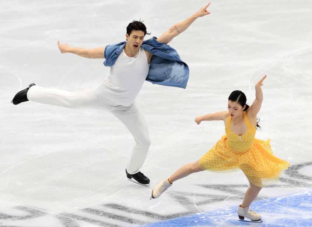 2020年2月8日,隋文静/韩聪(左)在韩国首尔举行的四大洲花样滑冰锦标赛双人滑比赛中