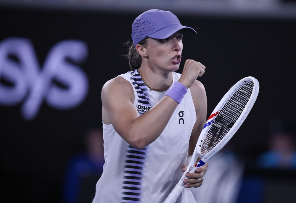 1月24日,斯维亚特克在比赛中庆祝得分。新华社发(王申 摄)