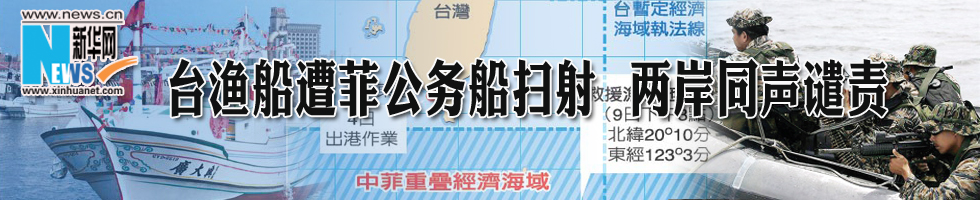 | · | 有消息稱臺灣漁船遭射擊錄像被菲律賓刪改 (06-09) |