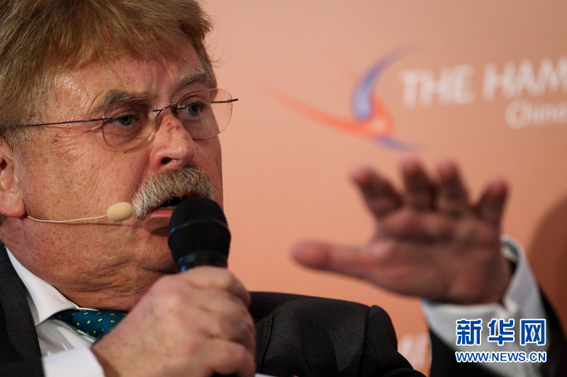 ??? 10月11日,在德國漢堡舉行的中歐論壇漢堡峰會上,歐洲議會議員、歐洲議會外交事務(wù)委員會主席埃瑪?布洛克發(fā)言。中歐論壇漢堡峰會第六屆會議11日在德國漢堡閉幕。本屆峰會以“中國與歐洲相遇”為主題。來自中歐政治、經(jīng)濟和學(xué)術(shù)界的500多位代表聚集在一起,探討中歐經(jīng)貿(mào)合作未來趨勢、中國經(jīng)濟的綠色發(fā)展等重要議題。新華社記者張帆攝