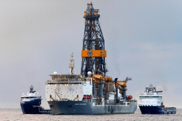 圖為11月15日,在西班牙蘭薩羅特島海岸,一艘石油勘探船正在作業。