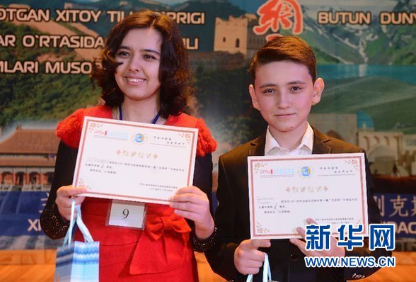 并列獲得烏茲別克斯坦第一屆“漢語橋”中學生中文比賽第二名的塔什干59中學的濟耶杜拉耶夫和東方學院尤努薩巴特區附中的希托拉波魯(女)。