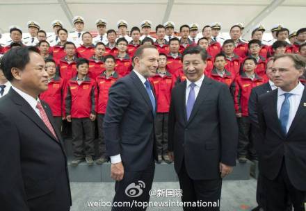 ????新華網北京11月18日電 據新華社“新國際”微博報道,藍天白云,景色宜人。習近平主席18日在澳大利亞塔斯馬尼亞州訪問時來到霍巴特港,在阿博特總理陪同下登上正在這里補給的“雪龍”號極地科考船,在甲板上和全體隊員合影,向大家問好?!斑@里離南極有多遠?”“走幾天?”合完影后,他佇立甲板,關切詢問有關情況。