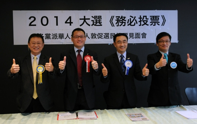 (資料圖片:新西蘭華人競選2014年國會議員,右二為楊健)