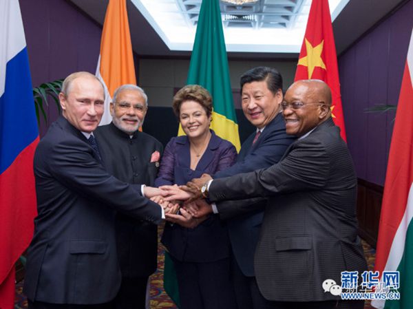 ????——金磚國家領導人非正式會晤一致同意要加強全方位合作,落實好巴西福塔萊薩會晤成果,加快推進金磚國家開發銀行和應急儲備安排有關建設進程,密切溝通和協調,維護共同利益。