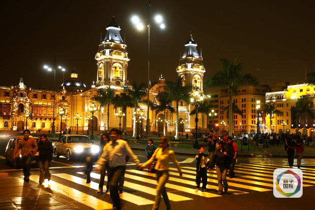 這是2008年11月18日拍攝的秘魯首都利馬馬約爾廣場(chǎng)夜色。新華社記者龔兵攝