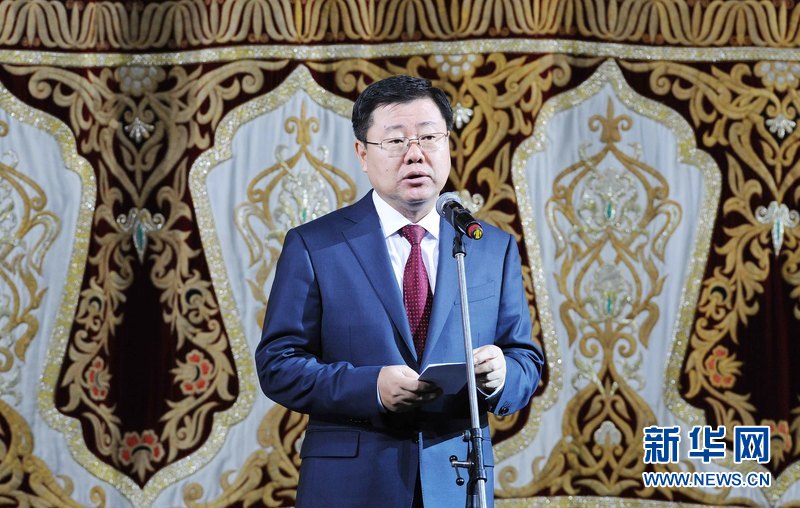 ? 1月18日晚,烏茲別克斯坦首都塔什干人民友誼宮,中國駐烏茲別克斯坦大使孫立杰在講話。新華網記者 沙達提 攝