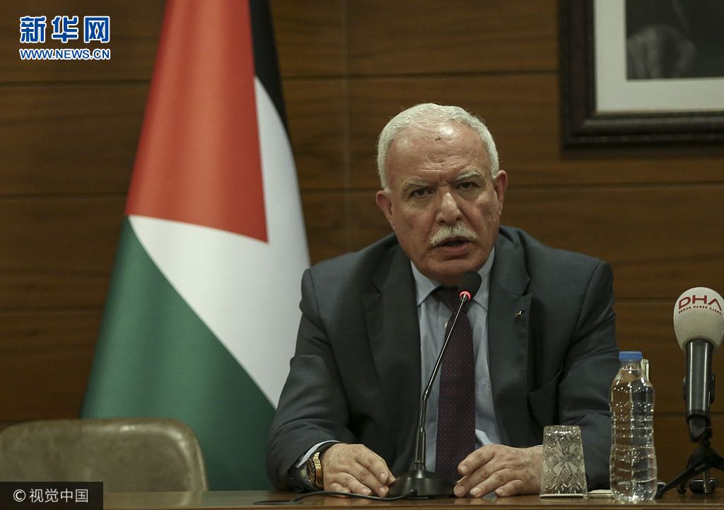 當地時間2017年12月20日,土耳其伊斯坦布爾,巴勒斯坦外長馬勒基出席新聞發布會,呼吁聯合國大會在21日舉行的緊急會議上認定美國承認耶路撒冷為以色列首都的決定“無效”。(圖片來源:視覺中國)