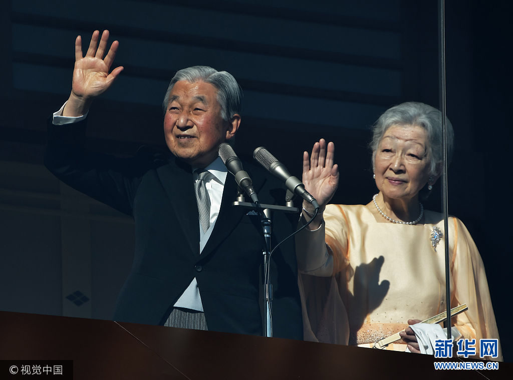 當(dāng)?shù)貢r(shí)間2017年12月23日,日本東京,日本明仁天皇慶祝84歲生日,在皇宮的陽臺(tái)上向祝福者揮手致意。(圖片來源:視覺中國(guó))