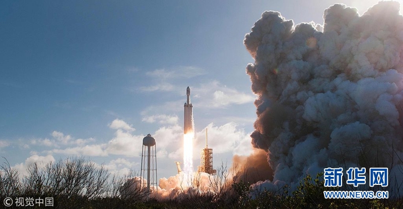 當地時間2018年2月6日,美國佛州卡納維拉爾角,美國重型運載火箭“獵鷹重型”6日攜帶一輛特斯拉跑車發射升空。(圖片來源:視覺中國)