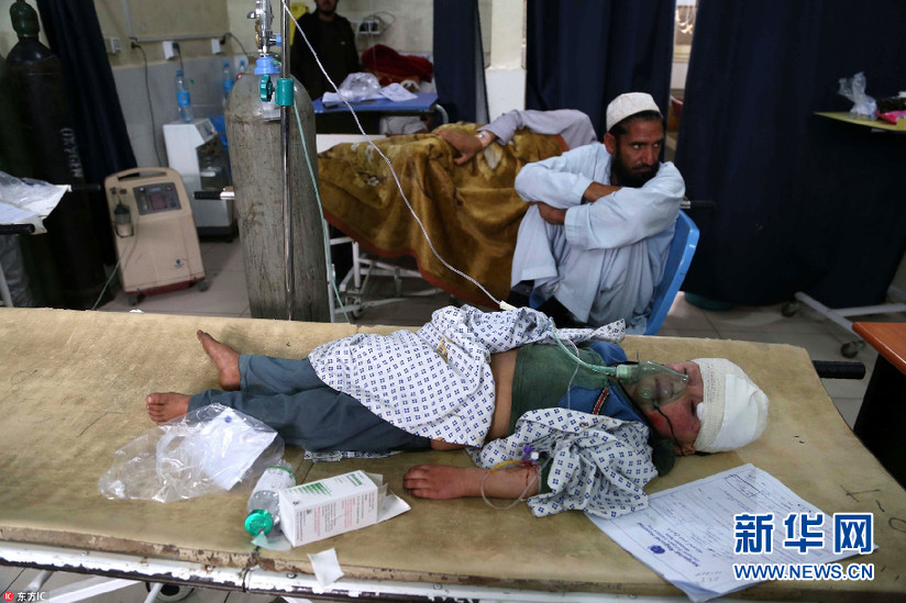 當地時間2018年4月20日,阿富汗賈拉拉巴德,受傷的兒童在醫院接受治療。4月19日,當地發生爆炸事故,致至少5名平民死亡,14人受傷。(圖片來源:東方IC)