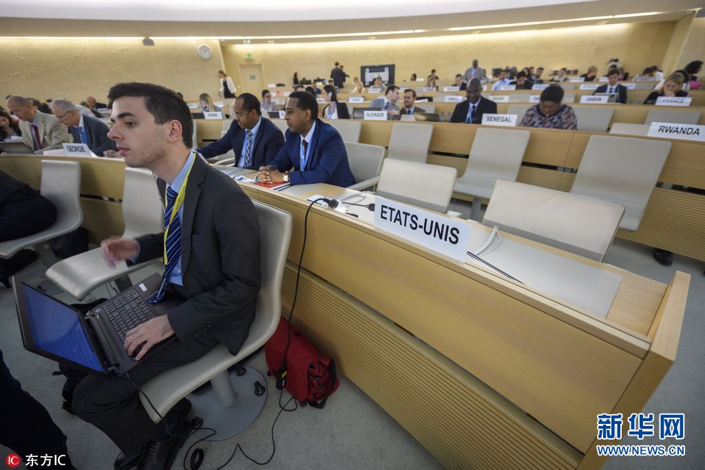 6月20日,瑞士日內瓦,聯合國人權理事會召開會議,美國代表席位空缺。美國常駐聯合國代表黑莉19日下午在華盛頓宣布,美國退出聯合國人權理事會。(圖片來源:東方IC)