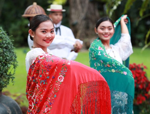 兩位元首從總統府草坪一起步行到主樓舉行會談。儀仗隊禮兵高擎五星紅旗全程隨行。沿途,主人特意安排當地藝術家伴隨著菲律賓傳統竹管弦樂翩翩起舞,展示菲律賓美好的傳統文化。
