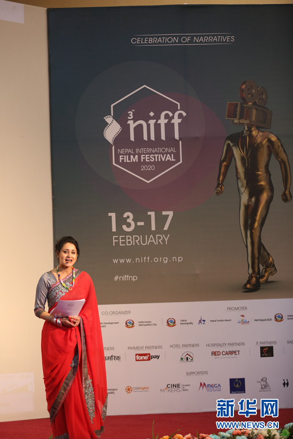2月17日,尼泊爾加德滿都市政大廳,優(yōu)雅美麗的主持人在第三屆尼泊爾國(guó)際電影節(jié)在加德滿都閉幕儀式上。本屆電影節(jié)2月13日開(kāi)始,一共有來(lái)自40個(gè)國(guó)家和地區(qū)的80部影片入選,其中中國(guó)和哈薩克斯坦聯(lián)合拍攝的《音樂(lè)家》作為開(kāi)幕電影,備受關(guān)注。記者 唐薇 攝