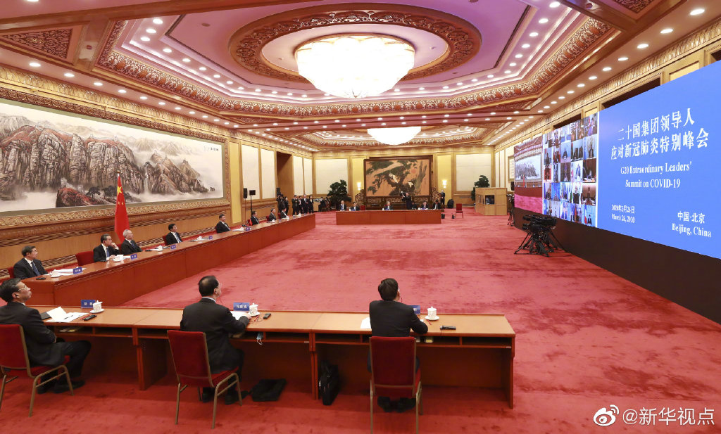 國家主席習(xí)近平26日晚在北京出席二十國集團(tuán)領(lǐng)導(dǎo)人應(yīng)對新冠肺炎特別峰會。習(xí)近平強(qiáng)調(diào),國際社會應(yīng)該加緊行動起來,堅(jiān)決打好新冠肺炎疫情防控全球阻擊戰(zhàn),遏制疫情蔓延勢頭。中方秉持人類命運(yùn)共同體理念,愿同有關(guān)國家分享防控有益做法,開展藥物和疫苗聯(lián)合研發(fā),并向出現(xiàn)疫情擴(kuò)散的國家提供力所能及的援助。?