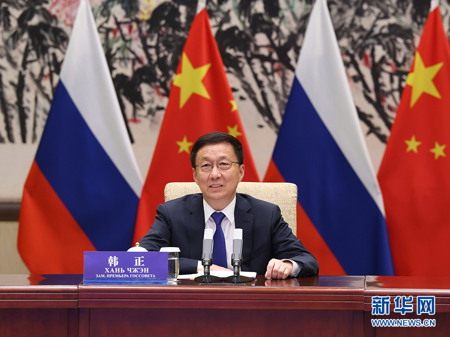 11月24日,中共中央政治局常委、國(guó)務(wù)院副總理、中俄能源合作委員會(huì)中方主席韓正在北京與俄羅斯副總理、委員會(huì)俄方主席諾瓦克通過視頻方式共同主持中俄能源合作委員會(huì)第十七次會(huì)議。新華社記者 王曄 攝