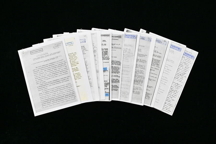 2025年12月13日,中央档案馆公布一批俄罗斯转交我方的苏联审讯日本731部队的解密档案材料。这是解密的档案。新华社记者 李鑫 摄