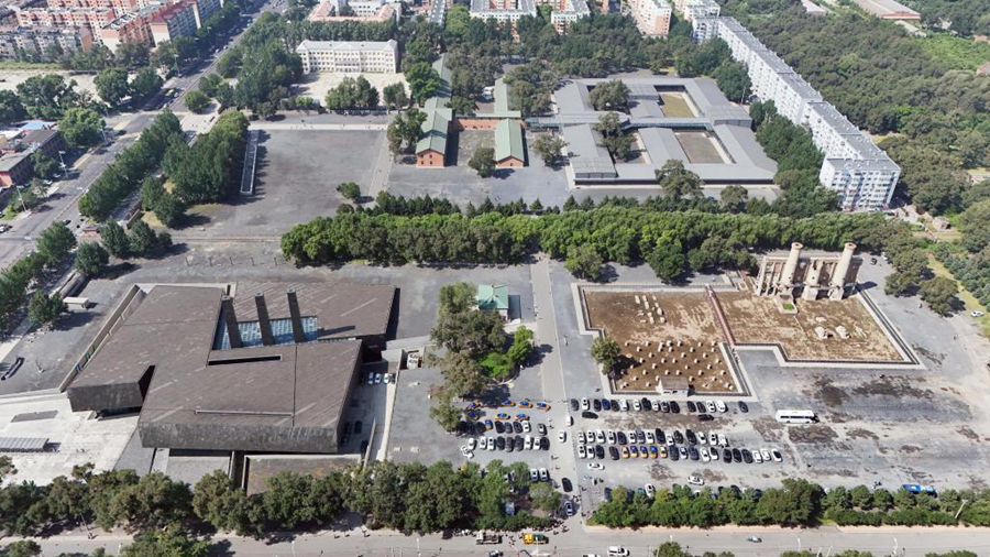 这是2025年8月15日拍摄的侵华日军第七三一部队罪证陈列馆与侵华日军第七三一部队旧址(无人机照片)。新华社记者 王松 摄