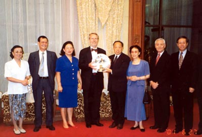 | | ????June 7. 1996 on a visit to the Republic of Kiribati, a country with a territory of 684 square kilometres and a population of 80,000 and also known as the Cross of the World because it happens to be the only country where both the equator and the international date line run through. |